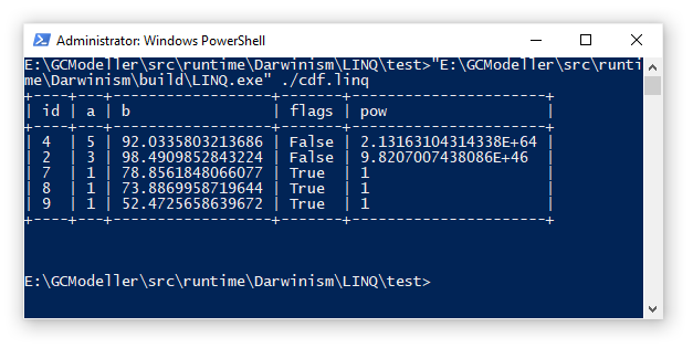 通过LINQ命令执行一下上面写好的脚本,输出的结果和我们所设想的一样: