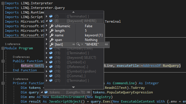 Dim tokens = LINQ.Language.GetTokens(file.ReadAllText).ToArray