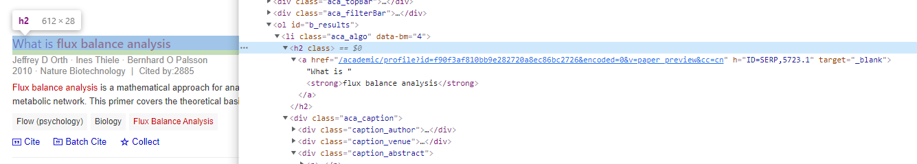 注:其实在这里我并非想要教会大家如何解析必应学术搜索的页面解析。而是想要大家可以通过这个解析的实例来了解GraphQuery查询引擎的工作原理,以及如何编写查询表达式来处理大家在工作中遇到的实际问题。