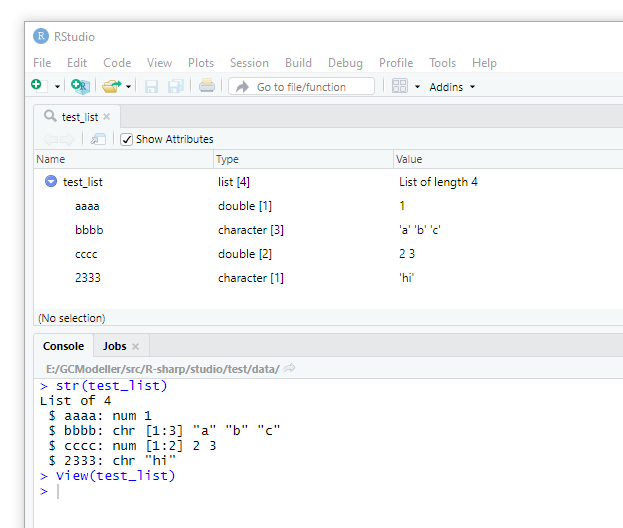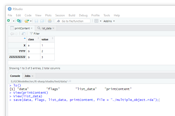 执行一下,可以看得到,在R#环境之中的RData数据集加载结果与R环境中的原始数据之间保持一致。