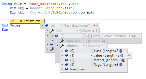 ElseIf RObjectSignature.IsDataFrame(rdata) Then