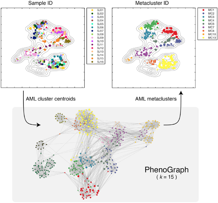 Levine JH, Simonds EF, Bendall SC, Davis KL, Amir ED, Tadmor MD, Litvin O, Fienberg HG, Jager A, Zunder ER, Finck R, Gedman AL, Radtke I, Downing JR, Pe'er D, Nolan GP. Data-Driven Phenotypic Dissection of AML Reveals Progenitor-like Cells that Correlate with Prognosis, Cell 2015