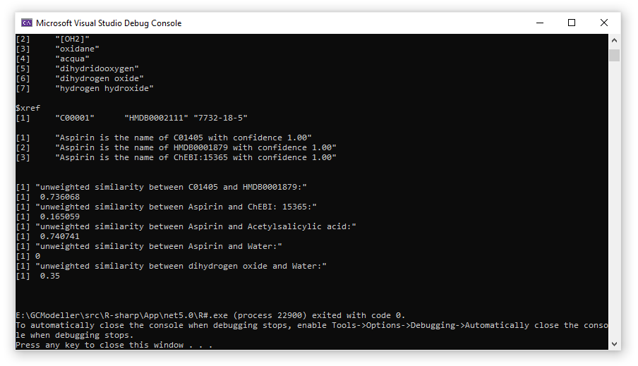[2] "Aspirin is the name of HMDB0001879 with confidence 1.00"