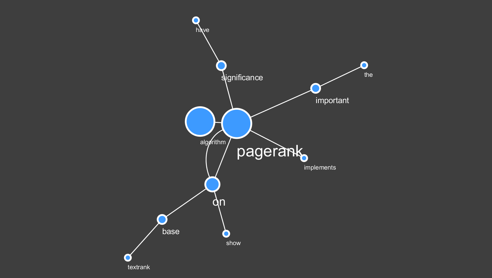 2. 接着我们就可以在分词结果的基础上进行图对象的构建了:在图对象里面,都是存在有节点和节点之间的边连接关系这两种类型的数据组成的。在我们前面所分词处理后的文本数据中,所分出来的每一个单词实际上都相当于图对象之中的节点对象;那么,这个时候,源文本中的前一个单词和后一个单词二者之间就可以添加一条边连接。通过单词和单词之间的前后链接关系我们就可以将任意一个文本数据转换为基于单词节点的图对象了