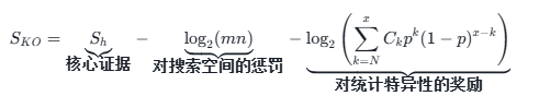 - 奖励“意外发现” (-log_2(P)):如果这个信号不仅强,而且在群体层面(整个KO)上表现出极不寻常的聚集性(N远大于期望值),就给予巨大的加分。