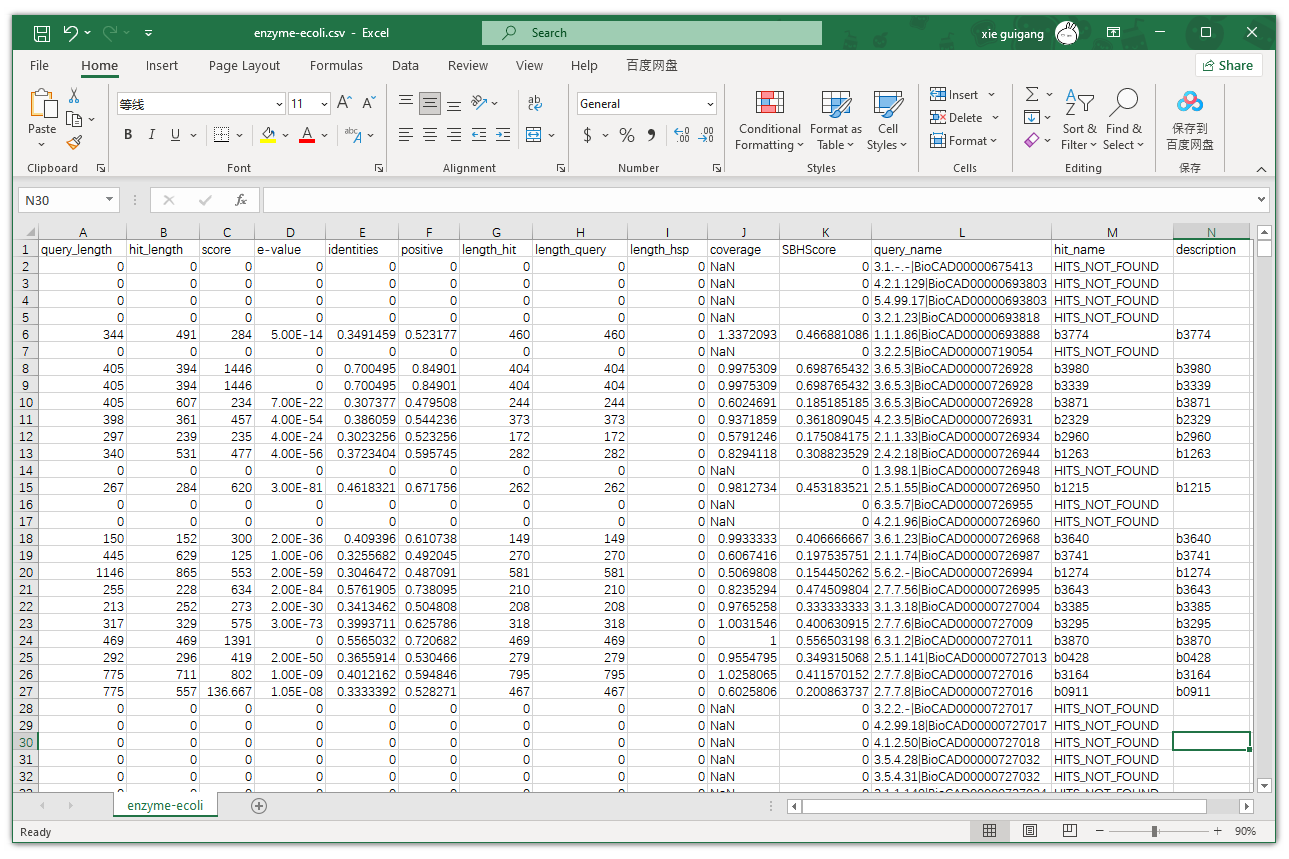 在上面所生成KAAS Rank结果的数据框中,我们将KAAS Rank Assignment Score计算所需要的参数以及BHR筛选用到的得分,添加在了原先的Hits结果表格的末尾。