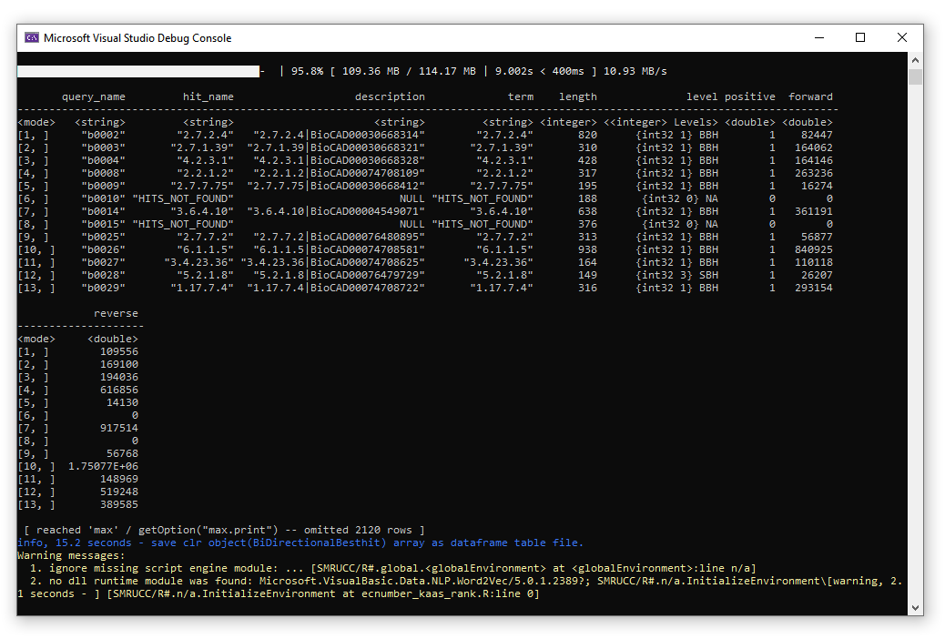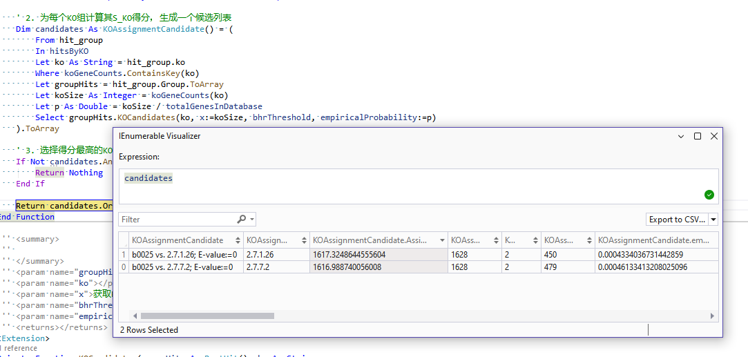 Dim bhrResult = BHR.BHRResult(forwardHits, reverseHits, threshold, score_cutoff).ToArray