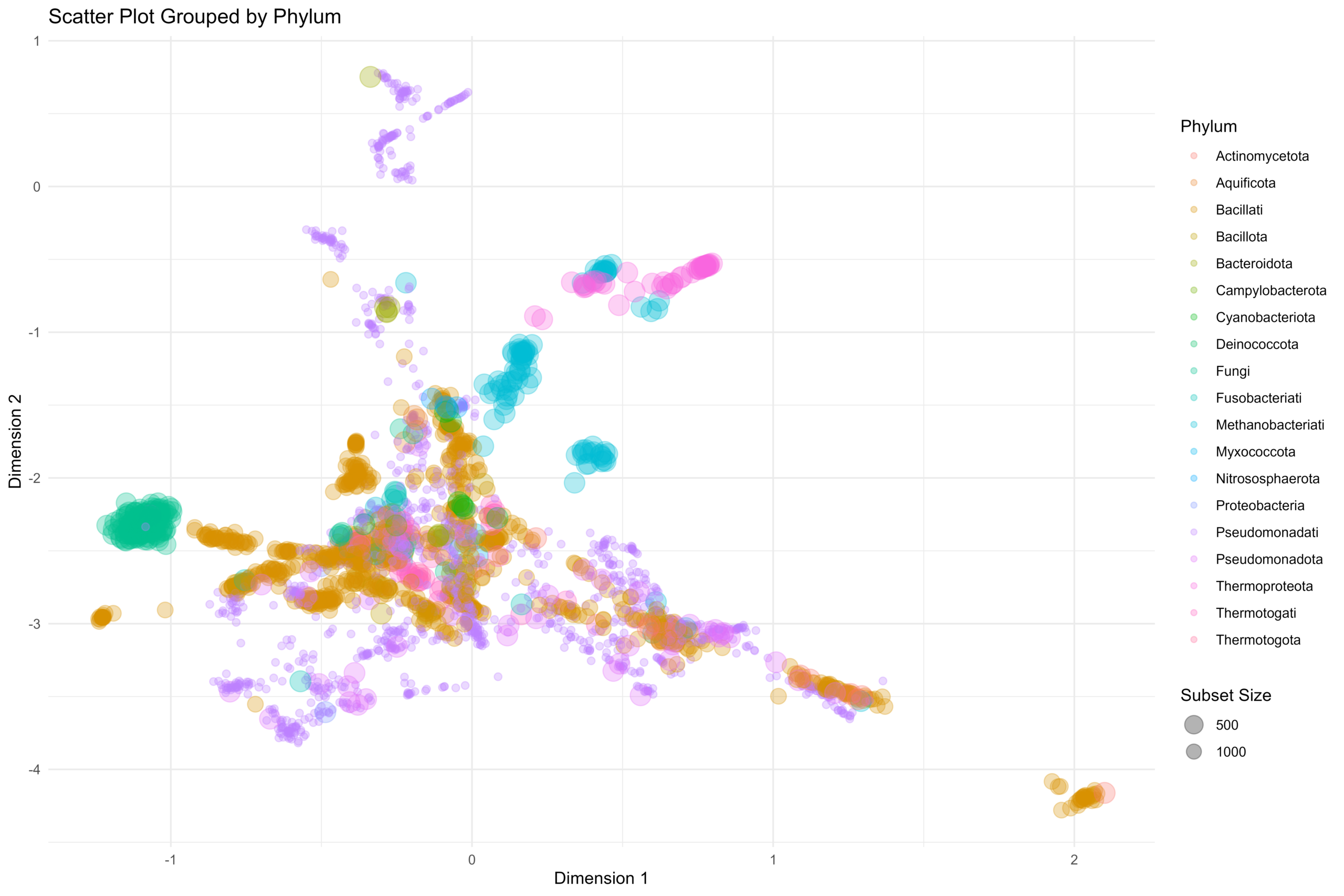 3. […] 在前面的一篇《基因组功能注释(EC Number)的向量化嵌入》博客文章中,针对所注释得到的微生物基因组代谢信息,进行基于TF-IDF的向量化嵌入之后。为了可视化向量化嵌入的效果,通过UMAP进行降维,然后基于降维的结果进行散点图可视化。通过散点图可视化可以发现向量化的嵌入结果可以比较好的将不同物种分类来源的微生物基因组区分开来。 […]